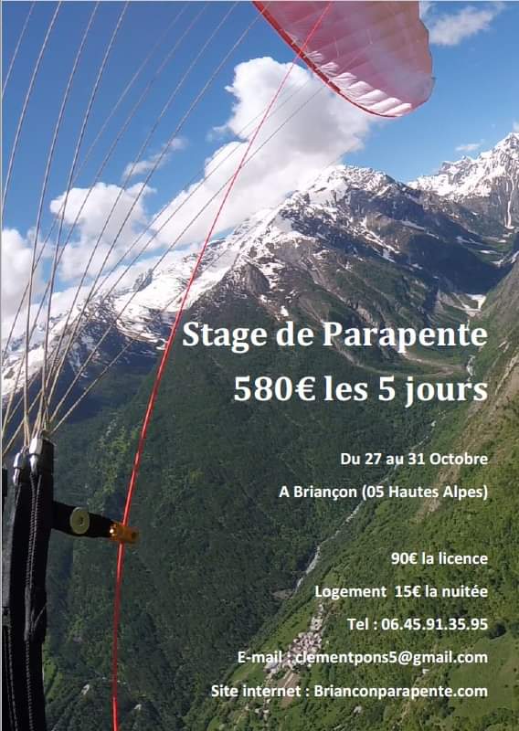 De Déc. à Avril : Stages et journées formation en Parapente et SpeedRiding à Briançon/Serre-Chevalier.