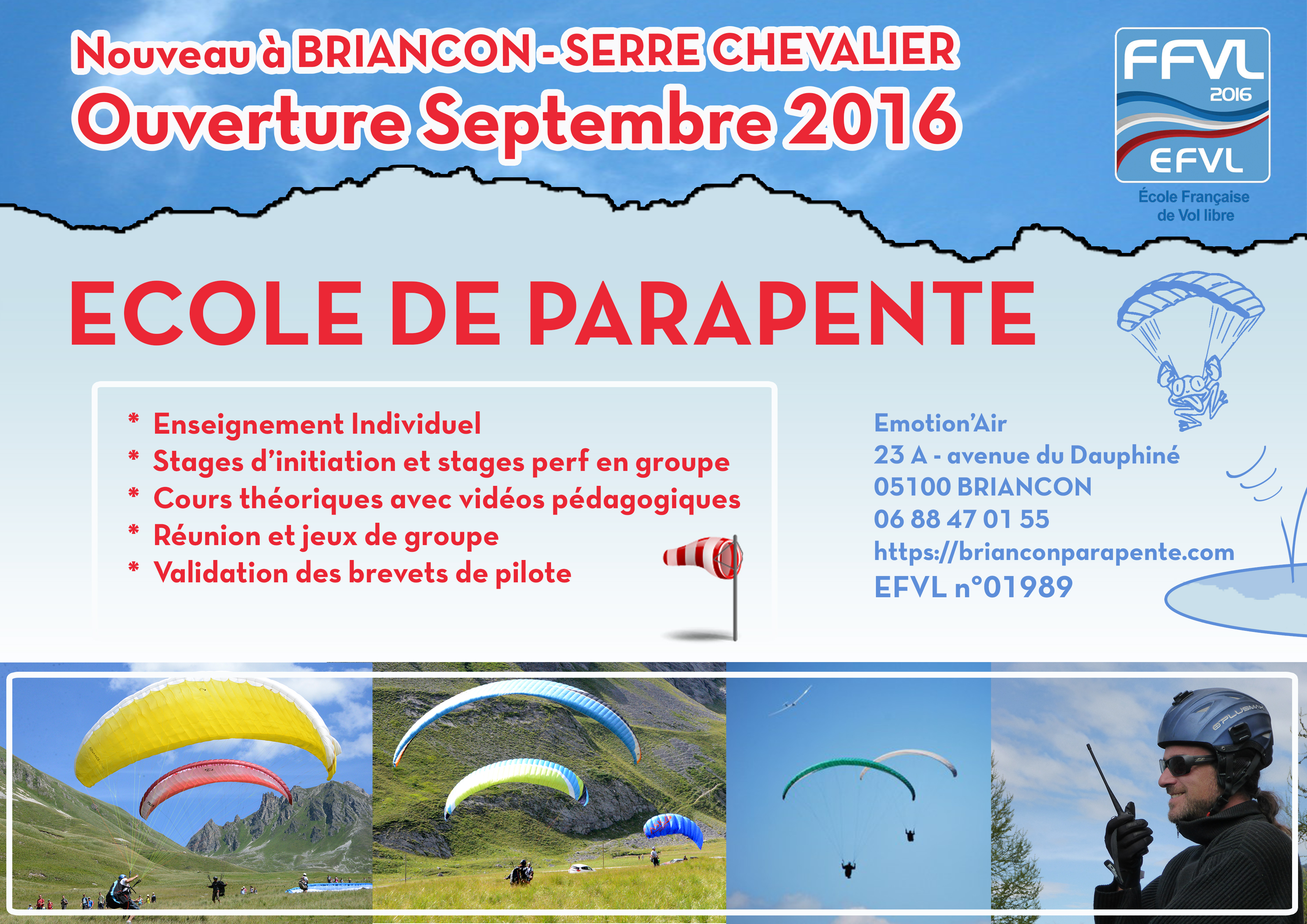 De Déc. à Avril : Stages et journées formation en Parapente et SpeedRiding à Briançon/Serre-Chevalier.