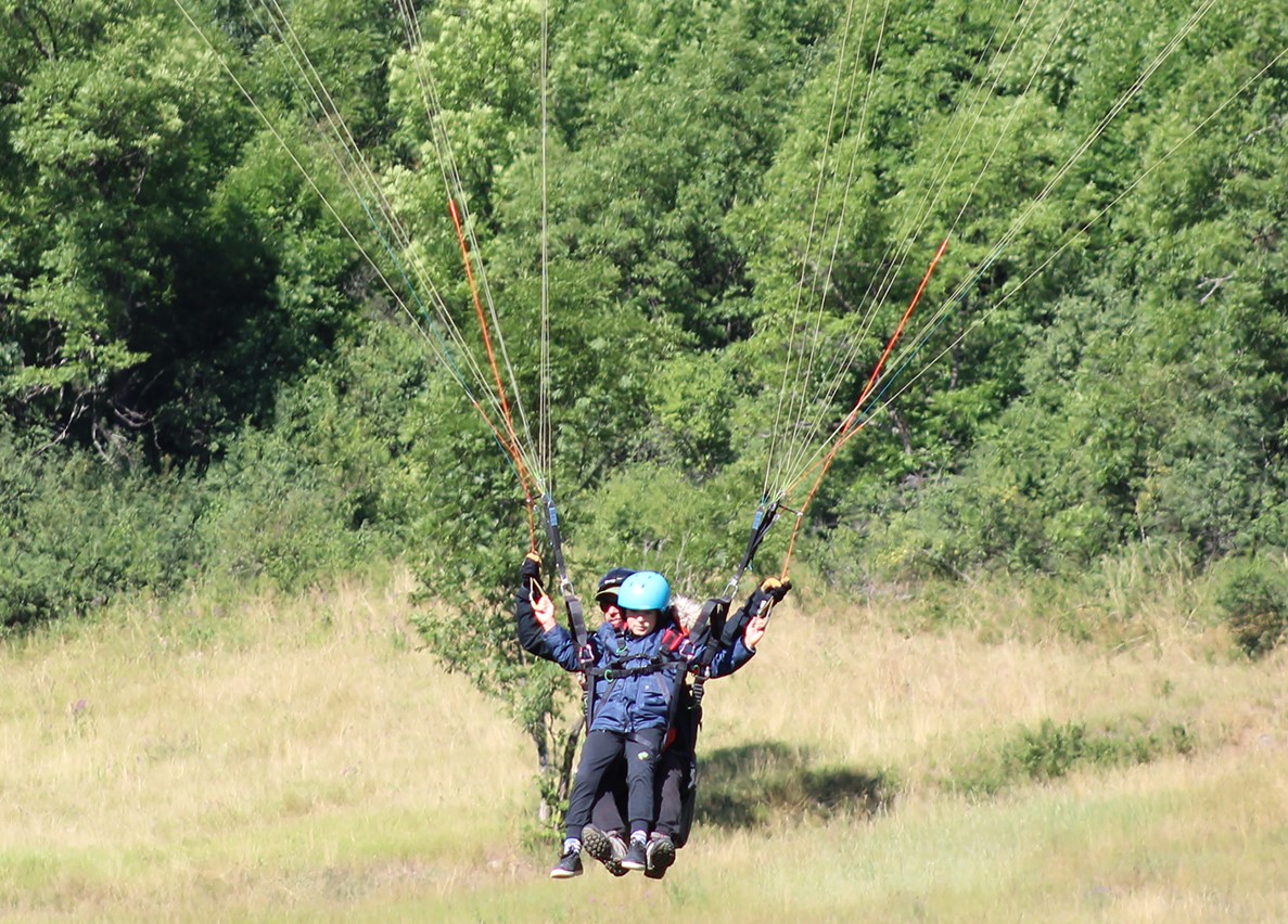 Sur un site de décollage rassurant et d’un dénivelé modeste, la durée limitée à 10 min. pour ce vol, permet de découvrir le parapente dans les meilleures conditions aérologiques et pédagogiques. Une petite descente aérienne qui ravira des personnes de tout âge de 7 à 12 ans. La solution idéale pour découvrir l’activité.